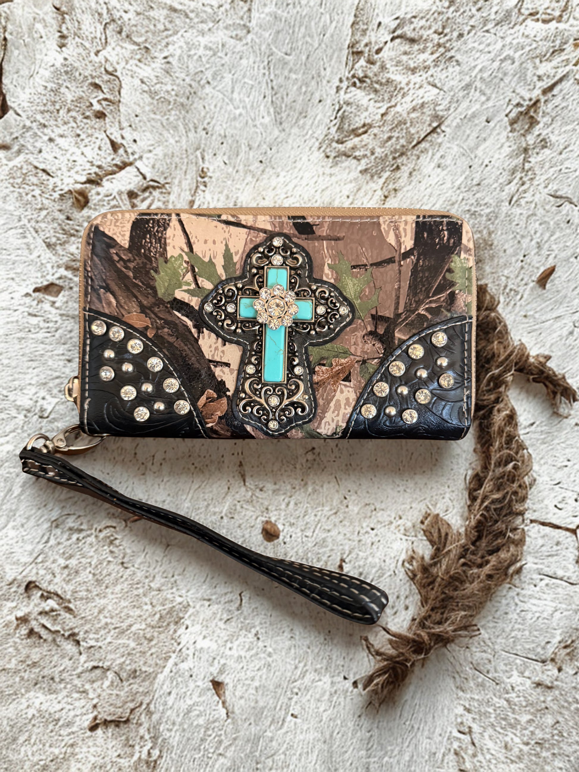 Side Zipper Wristlet Wallet with Turquoise Cross Only have one in Stock!